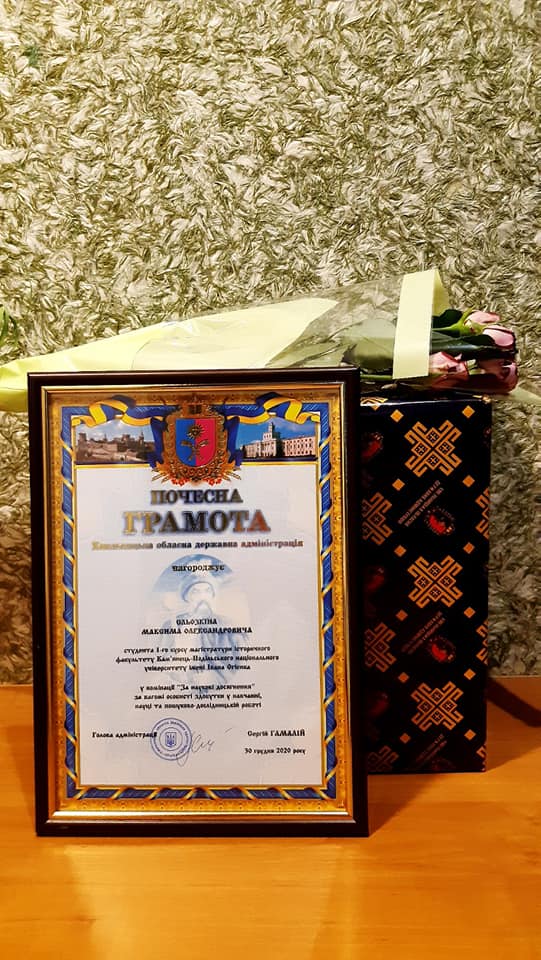 Очільник наукового сектору студентського самоврядування Максим Сльозкін став лауреатом обласної премії “За вагомі досягнення у різних сферах суспільного життя” у номінації “За наукові досягнення” та нагороджений почесною грамотою Хмельницької обласної адміністрації і цінним подарунком. Вітаємо із заслуженою нагородою та бажаємо подальших здобутків!!!