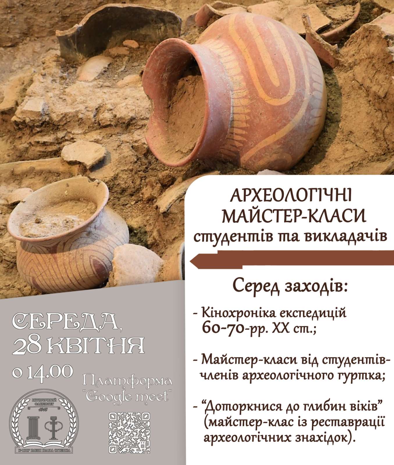 Запрошуємо Вас відвідати археологічні майстер-класи студентів та викладачів історичного факультету Університету Огієнка.