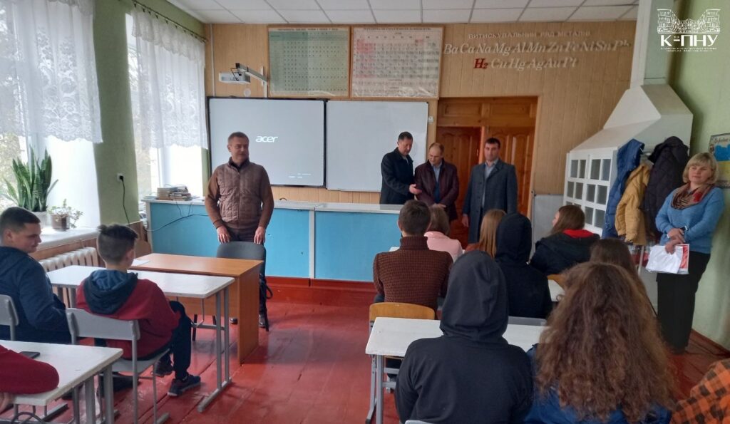 12 жовтня науково-педагогічні працівники К-ПНУ зустрілися з учнями Дунаєвеччини. Керівник відділу профорієнтаційної роботи, доуніверситетської підготовки та сприяння працевлаштуванню випускників університету Володимир Адамовський, декан історичного факультету Анатолій Глушковецький, завідувач кафедри історії української літератури та компаративістики Олег Рарицький відвідали Миньковецьку ЗОШ І-ІІІ ступенів Дунаєвецької міської ради Хмельницької області та Іванковецьку ЗОШ І-ІІІ ступенів Дунаєвецької міської ради Хмельницької області.