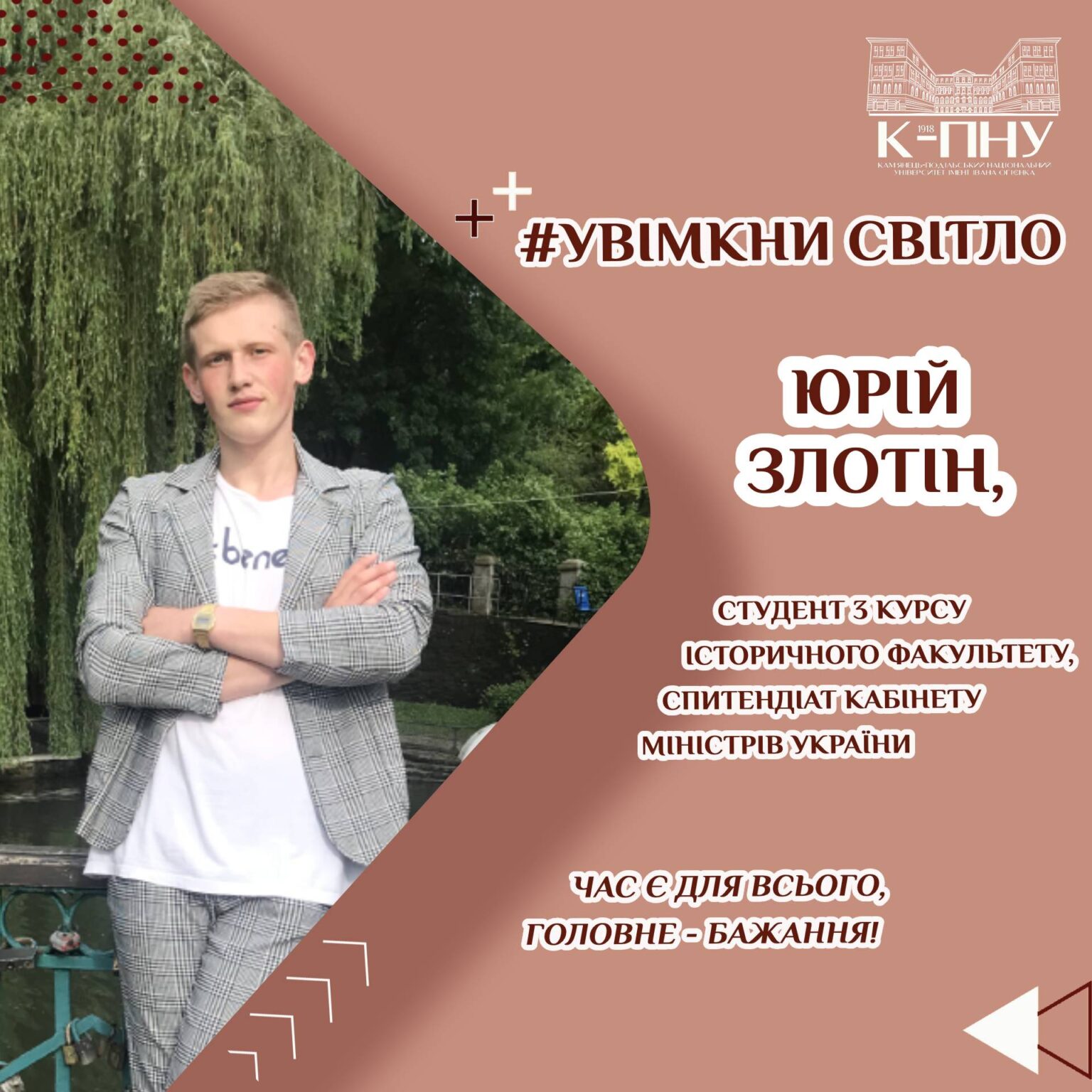 Юрій Злотін – студент ІІІ курсу історичного факультету спеціальності 032 Історія та археологія, стипендіат Кабінету Міністрів України.