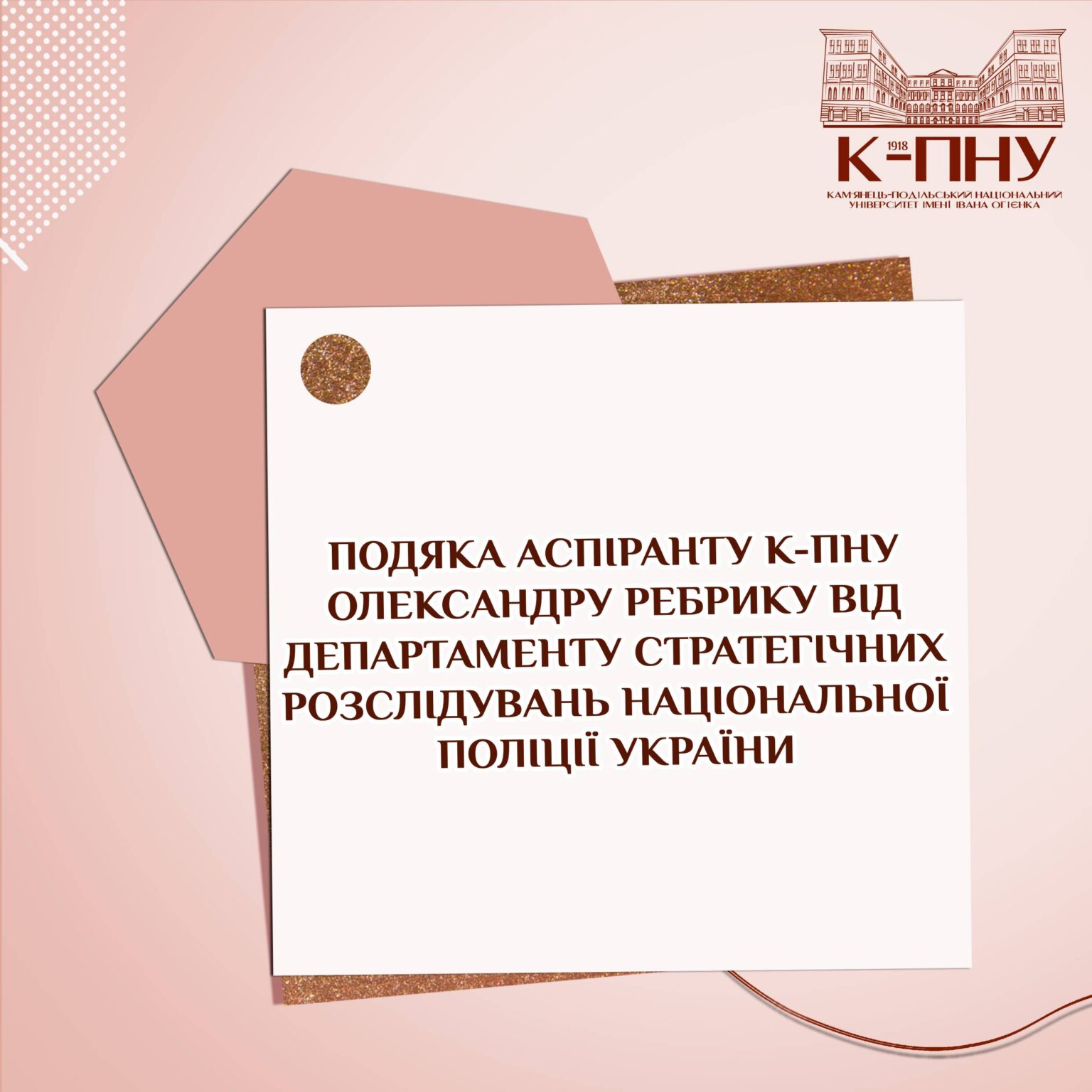 Управління стратегічних розслідувань в Київській області Департаменту стратегічних розслідувань Національної поліції України (начальник управління Дмитро Мартиненок) висловлює щиру подяку аспіранту К-ПНУ Олександру Ребрику за виявлену громадську позицію в активній участі та організації доставки гуманітарної допомоги мешканцям громад північної частини Київської області, які постраждали внаслідок ворожої агресії.