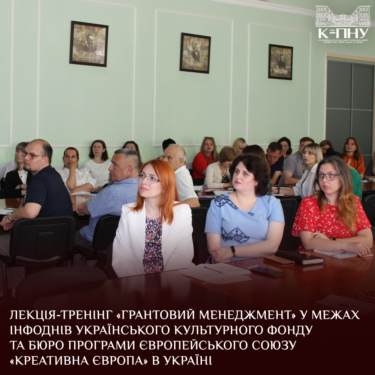 15 червня за ініціативи декана історичного факультету Анатолія Глушковецького в межах інфоднів у залі засідань К-ПНУ відбулася лекція-тренінг «Грантовий менеджмент» від представників Українського культурного фонду та Бюро програми Європейського Союзу «Креативна Європа» в Україні для академічної спільноти університету, представників культурних організацій міста та всіх охочих.