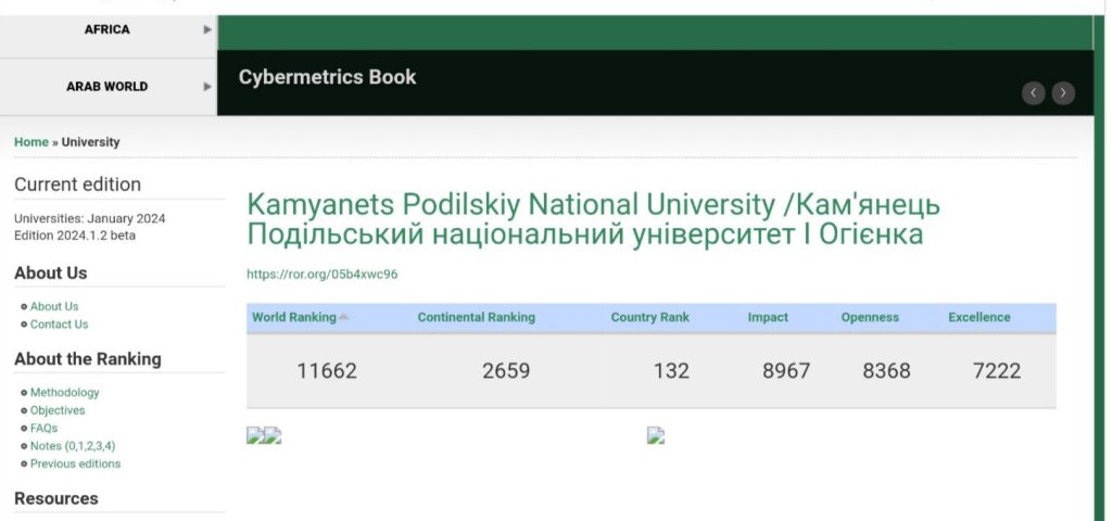 У 2024 році опубліковано черговий рейтинг, у якому Університет Огієнка продемонстрував позитивну динаміку та посів 132 місце серед 299 ЗВО України (у січні 2023 р. – 135 місце серед 306 ЗВО України) й 11662 місце серед університетів світу (у січні 2022 р. – 11728 місце).