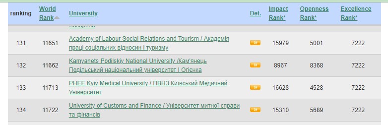 Найбільший міжнародний академічний рейтинг закладів вищої освіти «Webometrics Ranking of World’s Universities» періодично презентує незалежне, об’єктивне безкоштовне відкрите наукове дослідження для надання надійної, багатовимірної, актуальної і корисної інформації про ефективність університетів з усього світу.