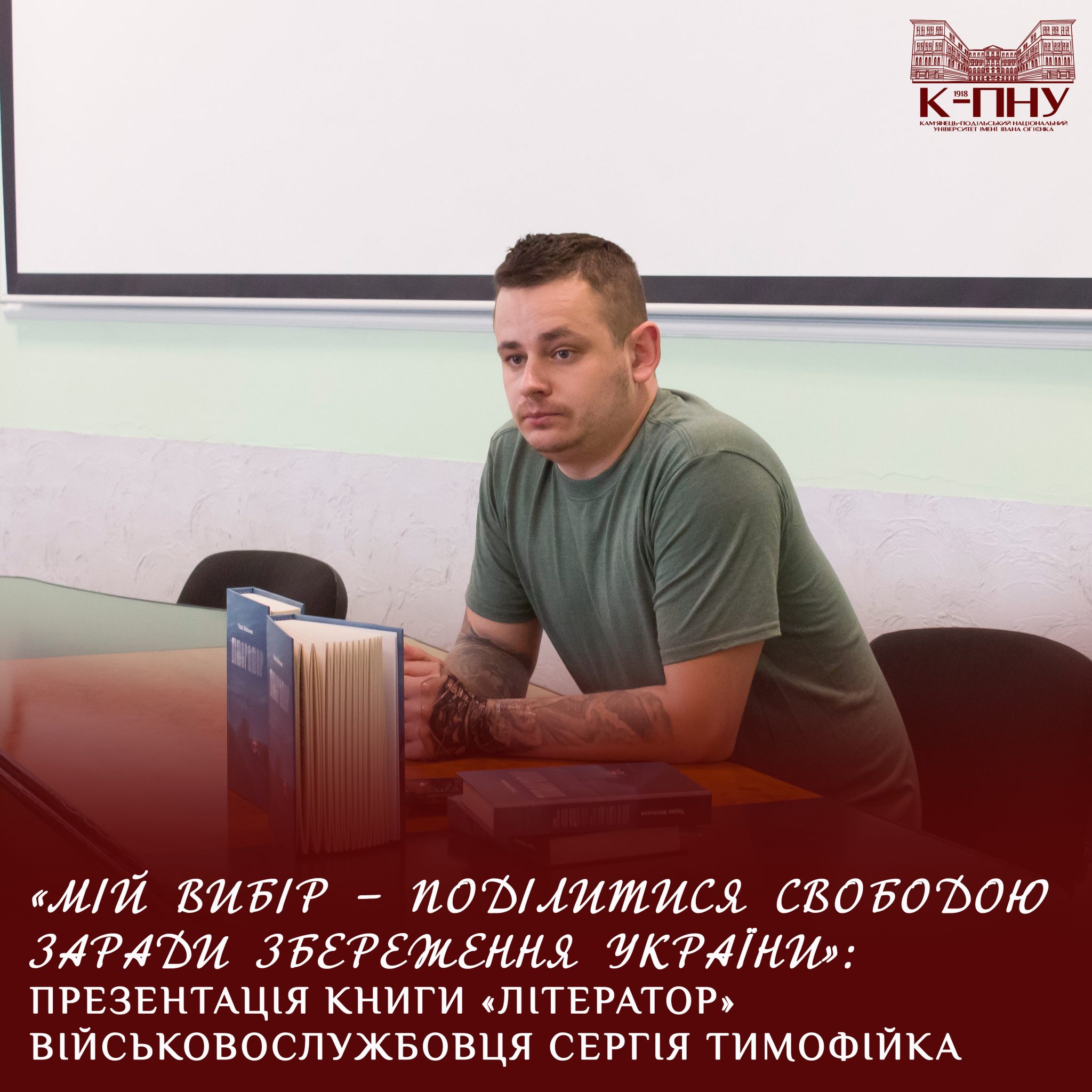16 травня відбулася презентація книги «Літератор» асистента кафедри всесвітньої історії К-ПНУ, військовослужбовця Сергія Тимофійка (псевдонім Тарас Мельник).
