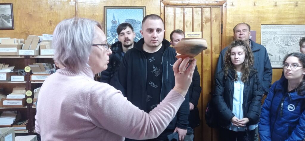 30 вересня студенти історичного факультету Кам’янець-Подільського національного університету імені Івана Огієнка, а також декан факультету, кандидат історичних наук, доцент Анатолій ГЛУШКОВЕЦЬКИЙ, гарант ОП Історія спеціальності 032 Історія та археологія магістерського рівня вищої освіти, доктор історичних наук, професор Олександр КОМАРНІЦЬКИЙ, кандидат історичних наук, доцент Олександр БАЖЕНОВ відвідали Національний історико-архітектурний заповідник «Кам’янець». Зустріч розпочалася із розмови із генеральним директором заповідника, членом робочої групи ОП Історія Василем ФЕНЦУРОМ, який окреслив основні напрями роботи очолюваного ним закладу, подякував факультету за багаторічну співпрацю і визначив перспективи подальшої комунікації. Гості спілкувалися також із ученим секретарем Ларисою РУДЮК, помічником генерального директора по науковій діяльності, кандидатом архітектури, доцентом Інною БЕРЕЗІНОЮ, відвідали відділи реставрації та реабілітації пам’яток (завідувач Анна КУЛІШОВА), науково-фондової діяльності (Олена ВІЛЬЧИНСЬКА), наукової та культурно-освітньої діяльності (Лілія СВІНЦІЦЬКА), бібліотеку (Сніжана ПАГОР). Своєрідним «гідом» екскурсії по фондах музею виступив науковий співробітник відділу реставрації та реабілітації пам’яток, кандидат історичних наук Валентин ПАГОР.