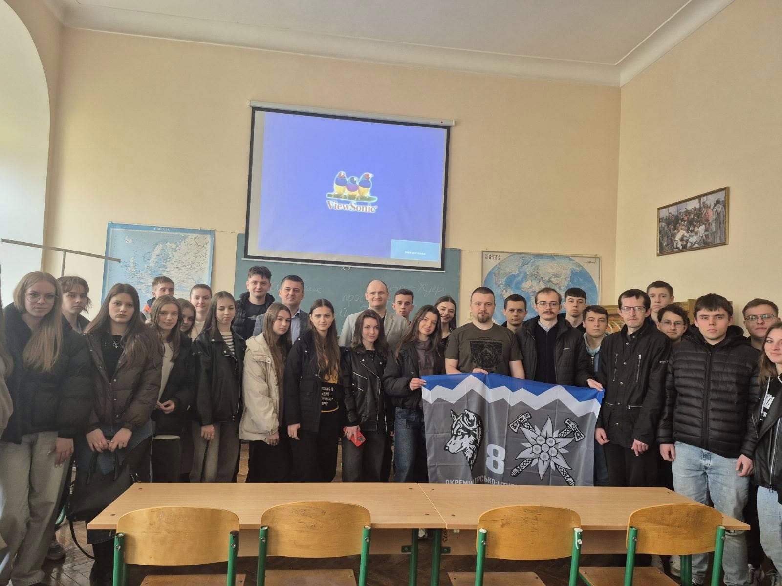 Студенти дізналися про особливості військової служби, виклики, з якими стикаються бійці під час бойових завдань з оборони нашої держави від московських загарбників. Також Тарас поділився власним досвідом участі у бойових та цікавими історіями з життя батальйону.