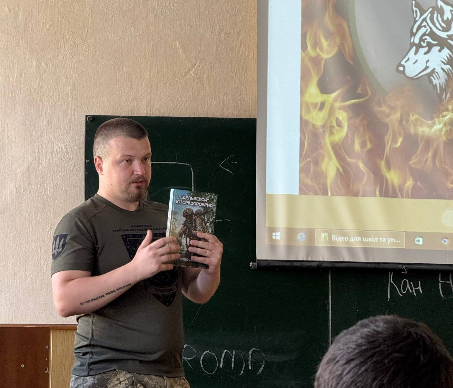 Тарас поділився власною історією служби, розповів про досвід, здобутий на фронті, та ведення щоденника, який допомагав осмислювати пережите. Він показав відео зі своєї служби, що дало змогу присутнім відчути реалії військових буднів.
