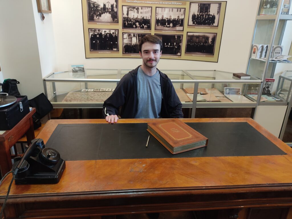 На завершення екскурсії здобувачам вищої освіти запропонували посидіти за «особливим» столом, якому вже понад 100 років, аби відчути атмосферу навчання й наукової праці кількох поколінь. Згідно легенди, усі хто сідає за нього обов’язково стануть відомими науковцям та педагогами!