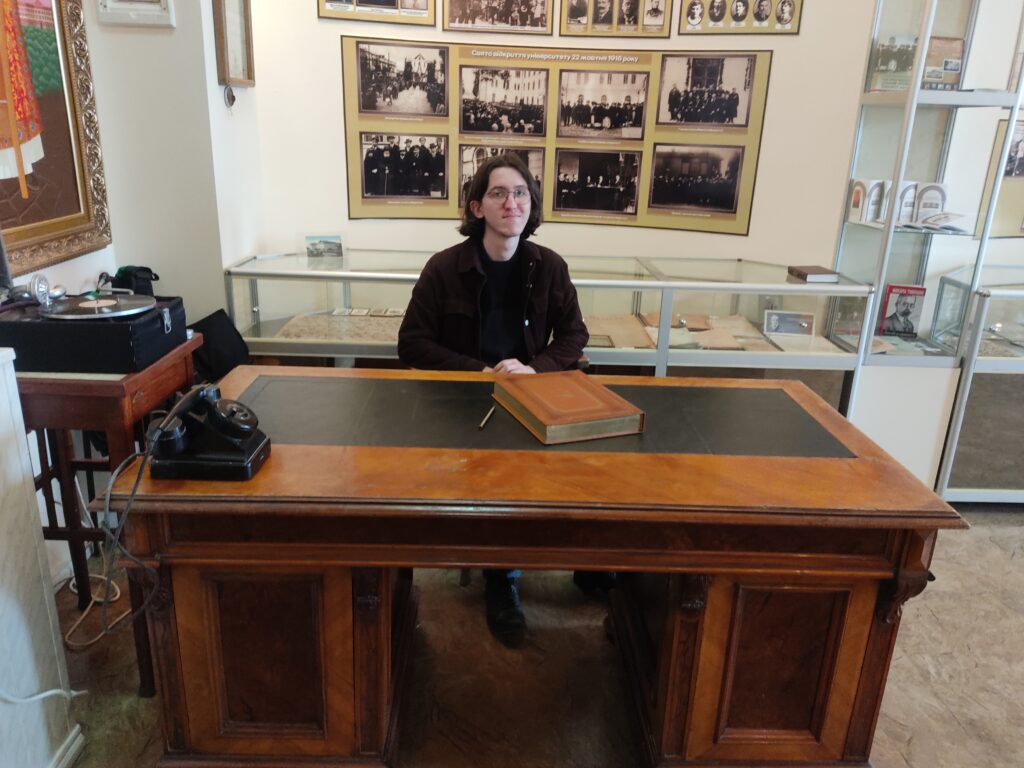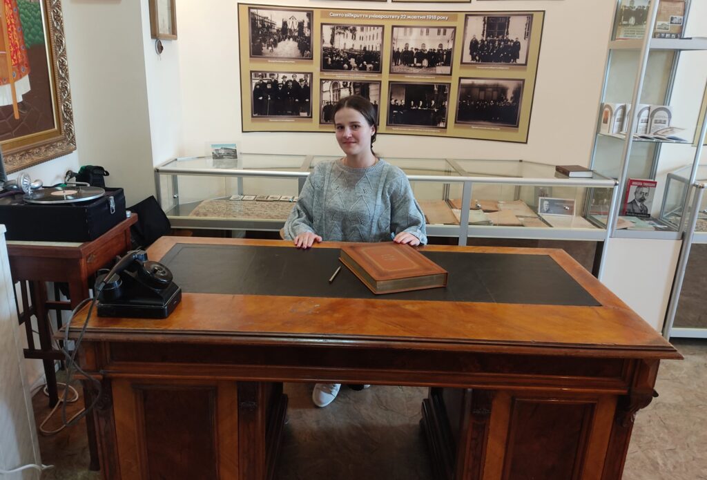 На завершення екскурсії здобувачам вищої освіти запропонували посидіти за «особливим» столом, якому вже понад 100 років, аби відчути атмосферу навчання й наукової праці кількох поколінь. Згідно легенди, усі хто сідає за нього обов’язково стануть відомими науковцям та педагогами!