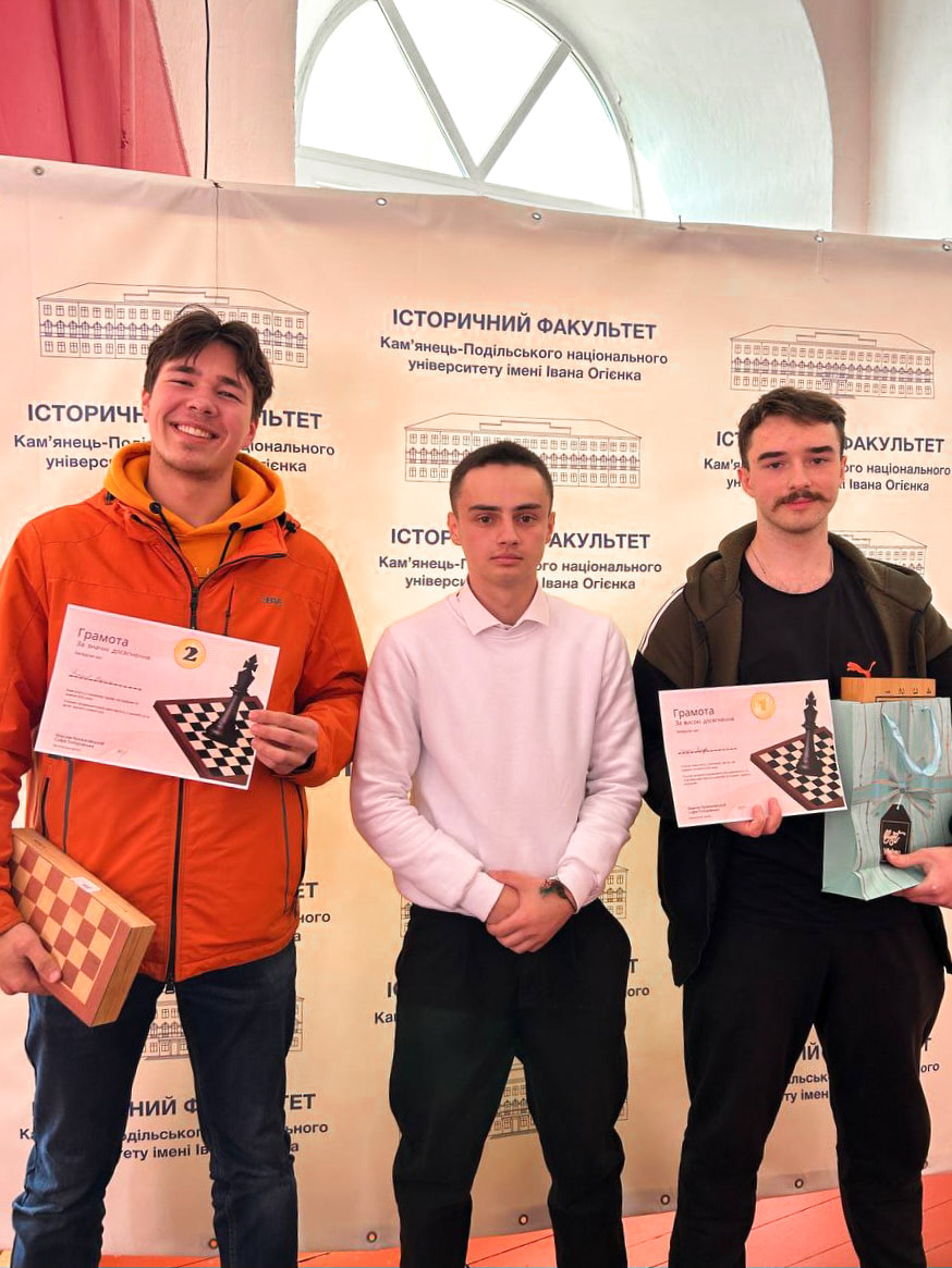 23 жовтня на історичному факультеті відбувся шаховий турнір між студентами-істориками. Вітаємо студента 1 курсу спеціальності А4 Середня освіта (Історія та громадянська освіта) Артема Оксанюка з І місцем та студента 3 курсу спеціальності 032 Історія та археологія Максима Баженова з ІІ місцем! Бажаємо нових звершень — як на шахівниці, так і в житті! Дякуємо за організацію турніру керівнику спортивного сектору студентського самоврядування Максиму Крижанівському.